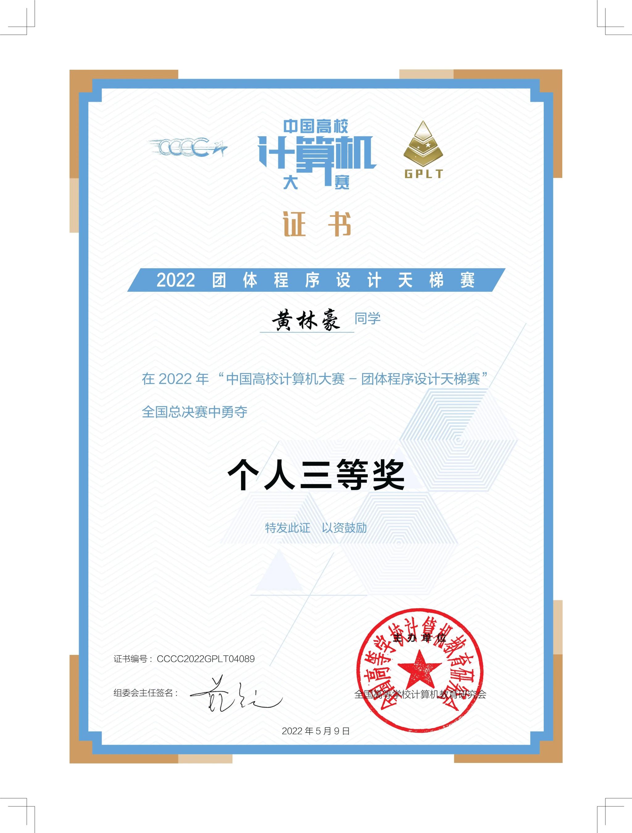 4、2022年团体程序设计天梯赛个人全国三等奖;