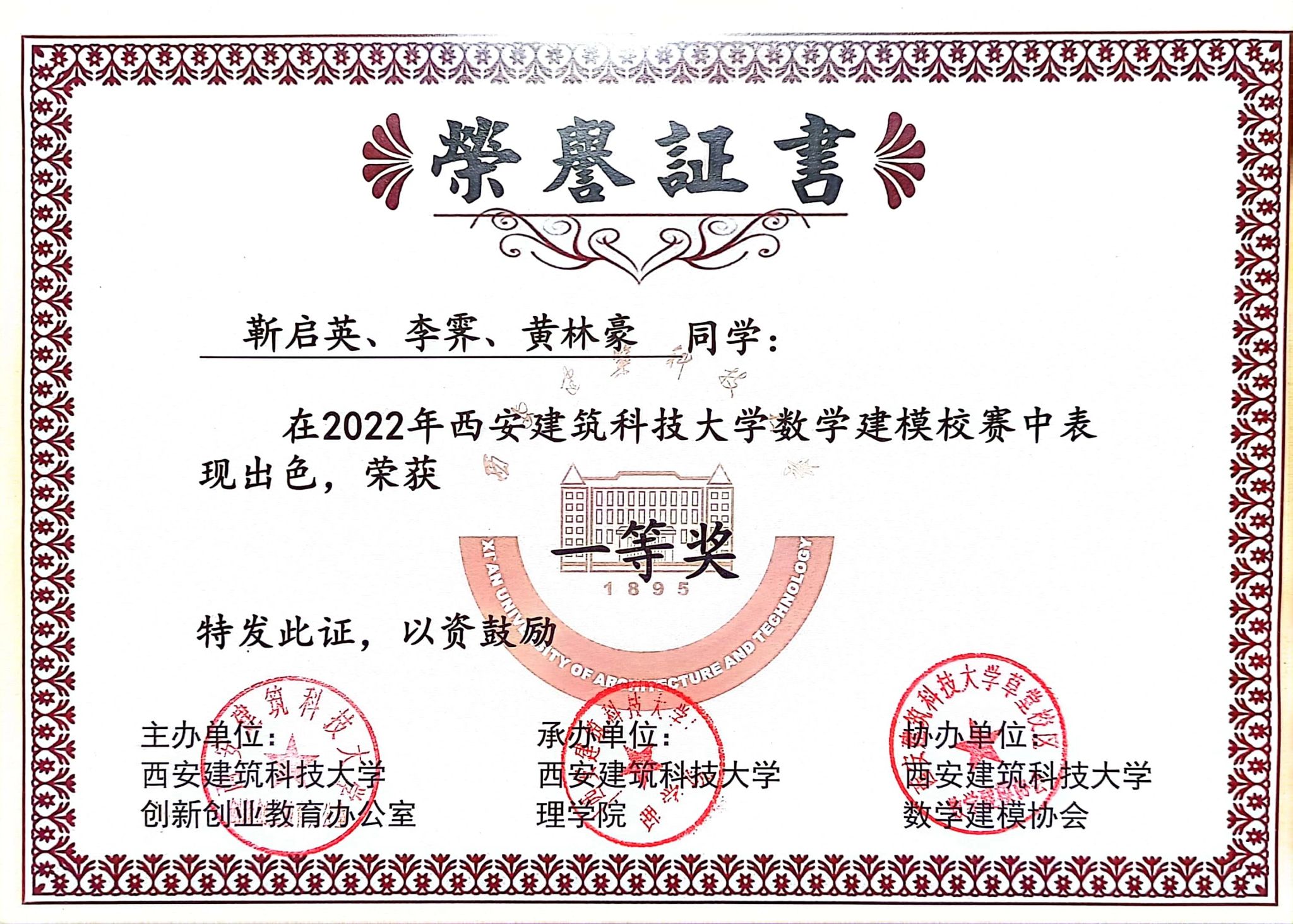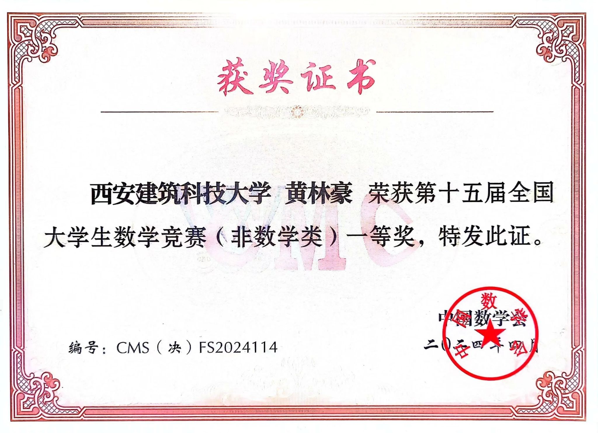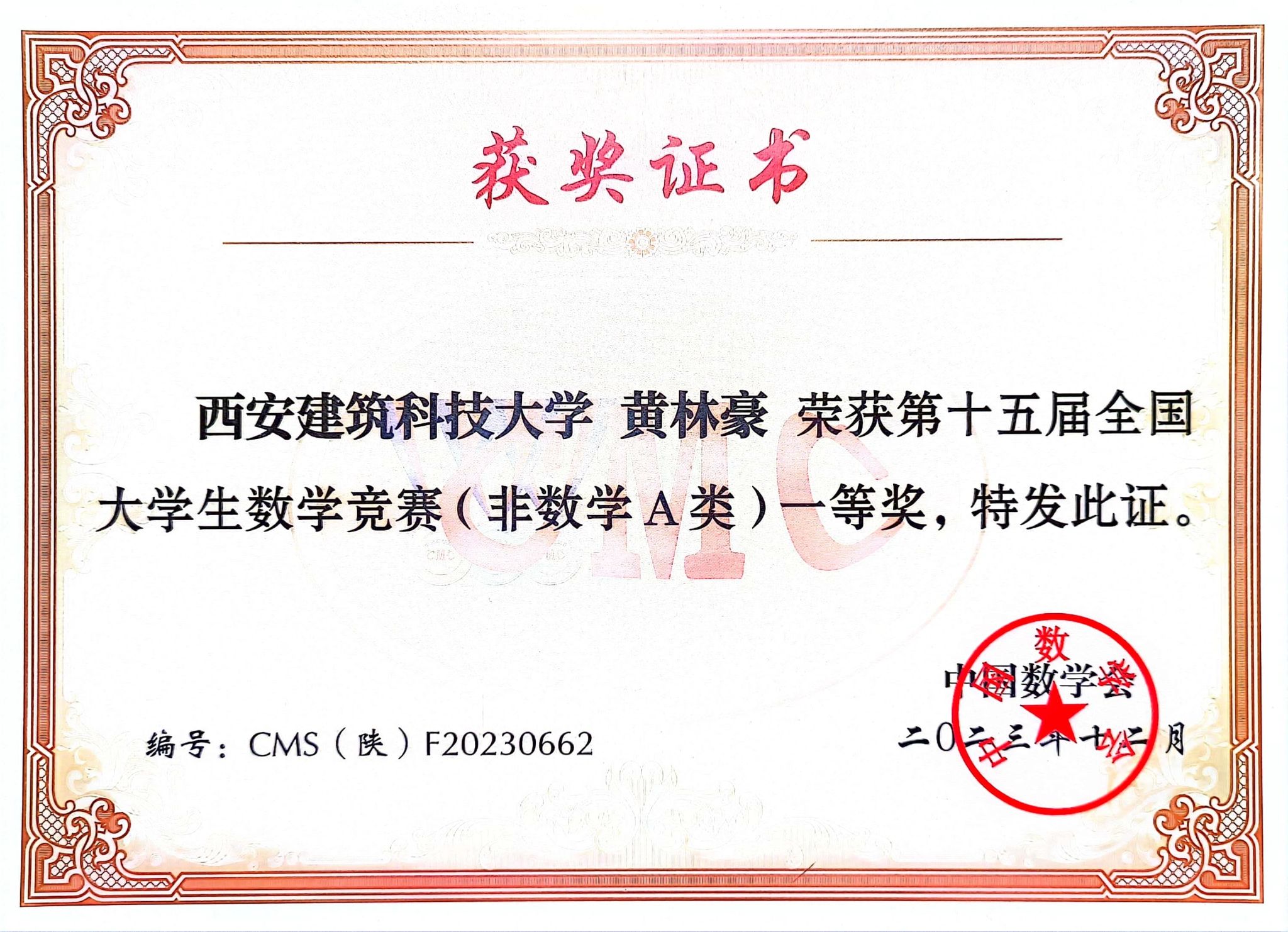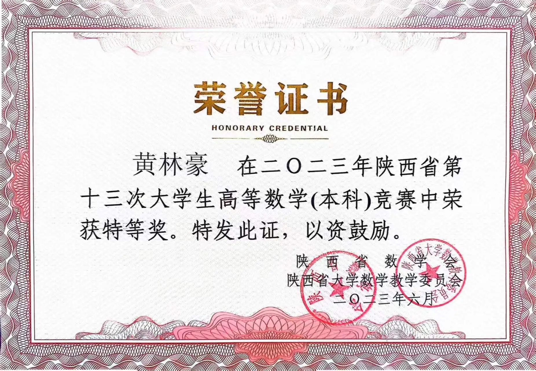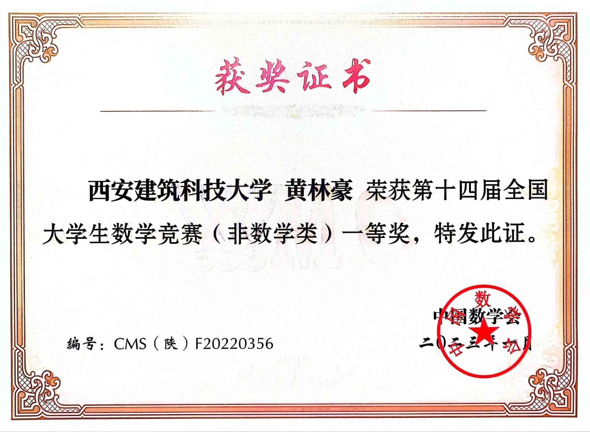 6、2022年全国大学生数学竞赛陕西省一等奖;