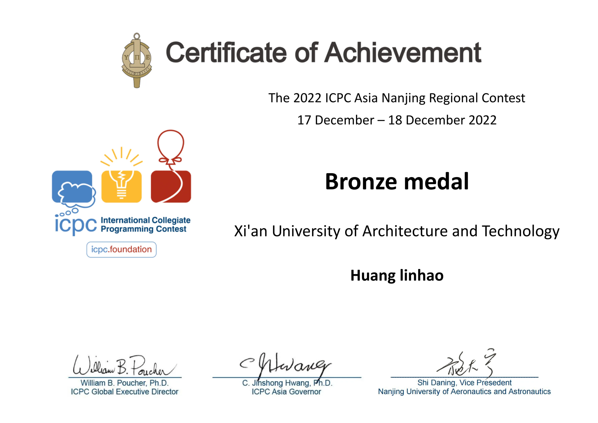 2、2022年ICPC亚洲区域赛南京站铜牌;