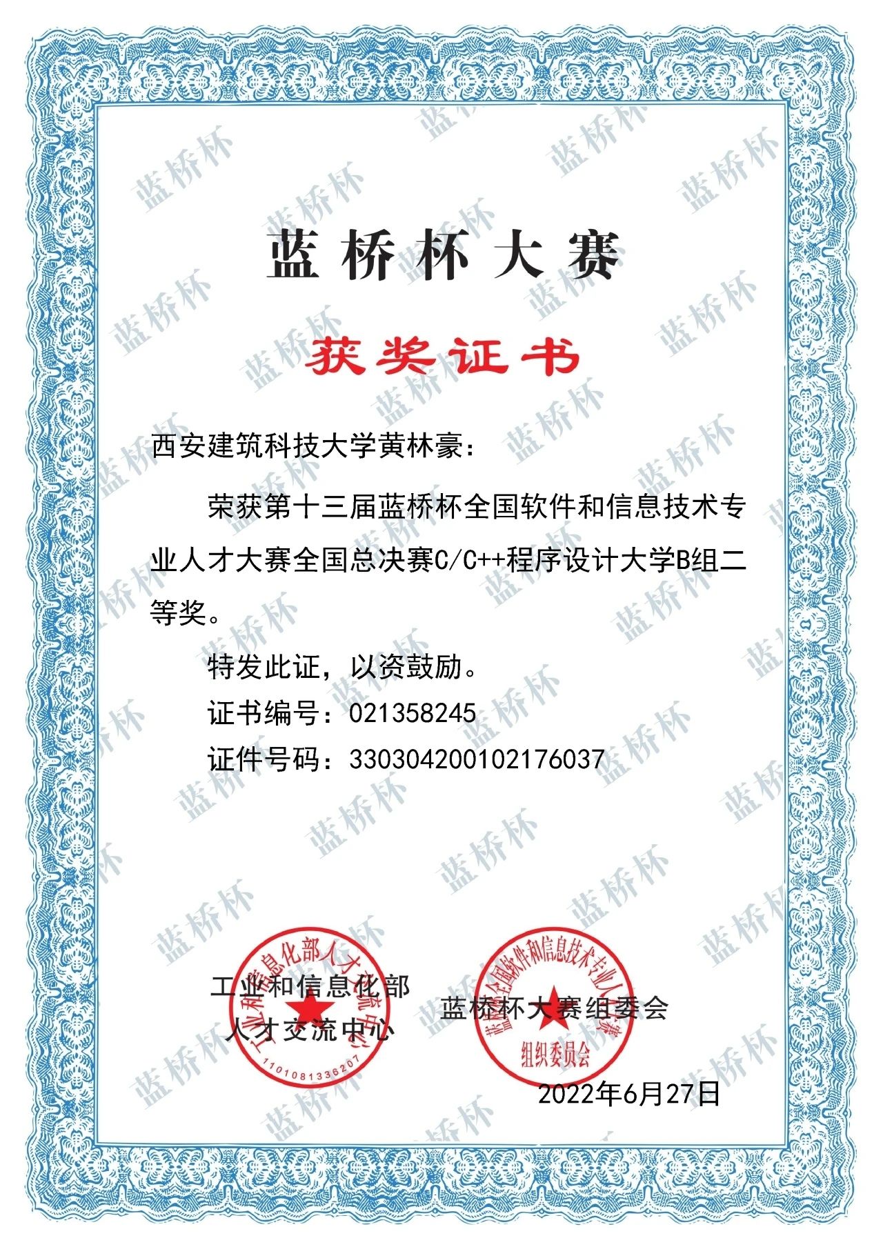 2、2022年蓝桥杯全国软件和信息技术专业人才大赛C/C++B组全国二等奖;