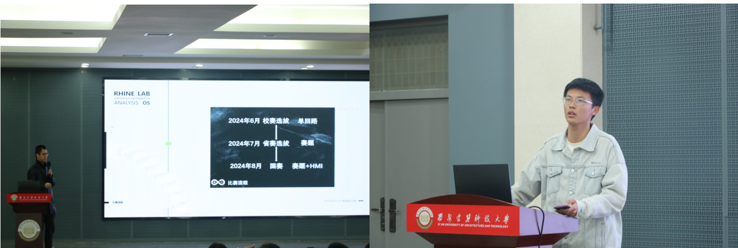 会上,柳钢伟分享了备赛资源平台,他表示要以平常心准备竞赛,勇于面对困难与失败,要在“因”上努力,在“果”上随缘。韩可阳表示通过在竞赛中的实际应用,让她更加深刻理解了课本上的知识点,对平时课内学习也有很大帮助。高一钦表示大赛不仅能磨练个人能力,更是连接学生与尖端科技知识的桥梁,具有极高性价比。韩俊禄建议大家在竞赛中遇到难题要积极交流,强化团队合作,只要坚持奋发努力,定能取得成功。徐雁清从赛前准备、比赛内容等方面介绍了工程实践赛项,鼓励同学们以工程赛项为切口,不断积累竞赛经验。朱恺卓分享了竞赛交流学习平台,他表示逻辑赛项是一项备受关注的赛道,吸引了众多参赛者,对学业乃至未来工作都有着极大帮助。