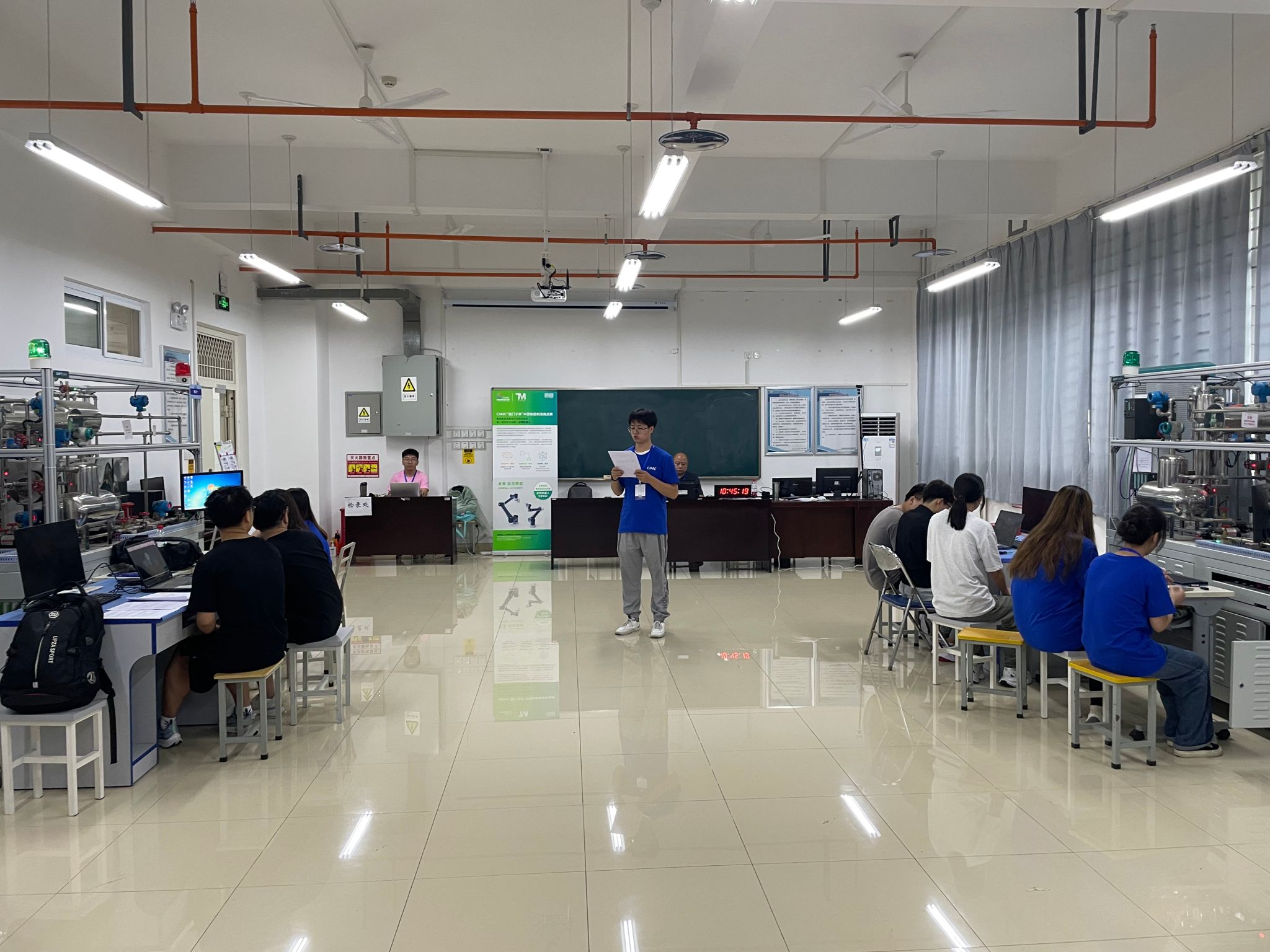 赛场上,参赛队员们沉着冷静、团结协作、随机应变,将理论知识和实践相结合,顺利完成了赛项内容,在工业对象的深入分析基础上,完成自动化系统的设计,并在真实的工业控制器和仿真的工业对象环境下完成实施与调试,同时运用智能技术兼顾节能、效率等优化目标,展现了扎实的专业技能和出色的工程实践应用能力。