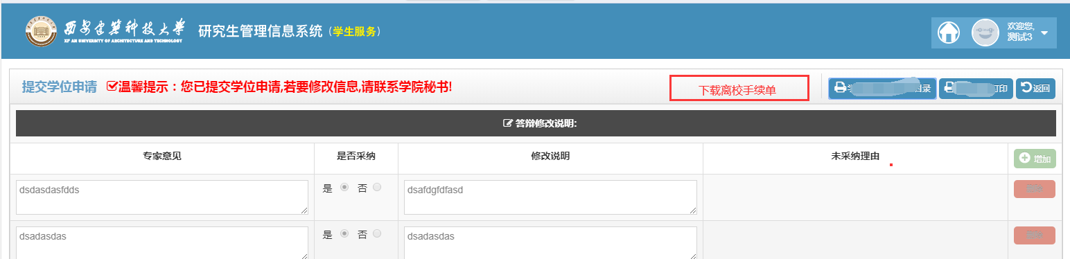 3.提交信息之后,生成答辩材料,完善答辩材料中其他信息,请导师、学院、研究生院相关部门线下审核。