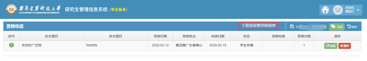 4.点击下载答辩费用报销单,用于答辩飞行报销