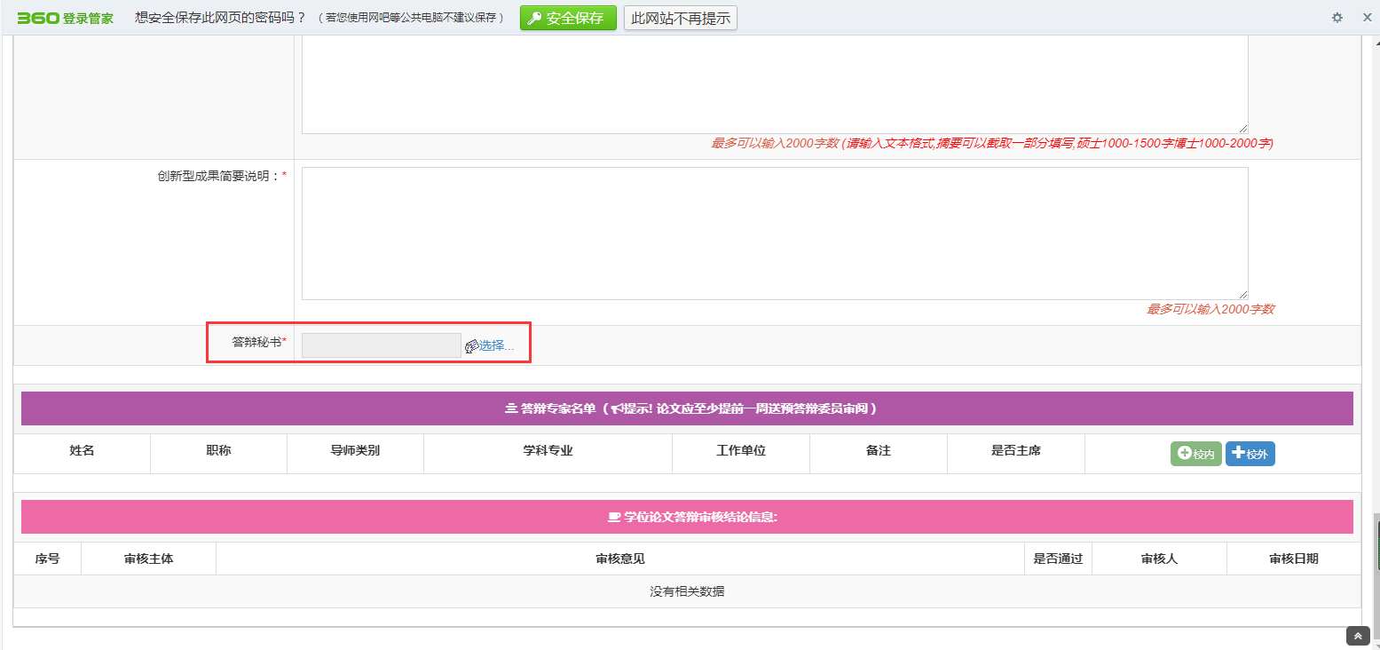 说明:选择答辩秘书,答辩秘书为我校在职教师(含师资博士后)。
