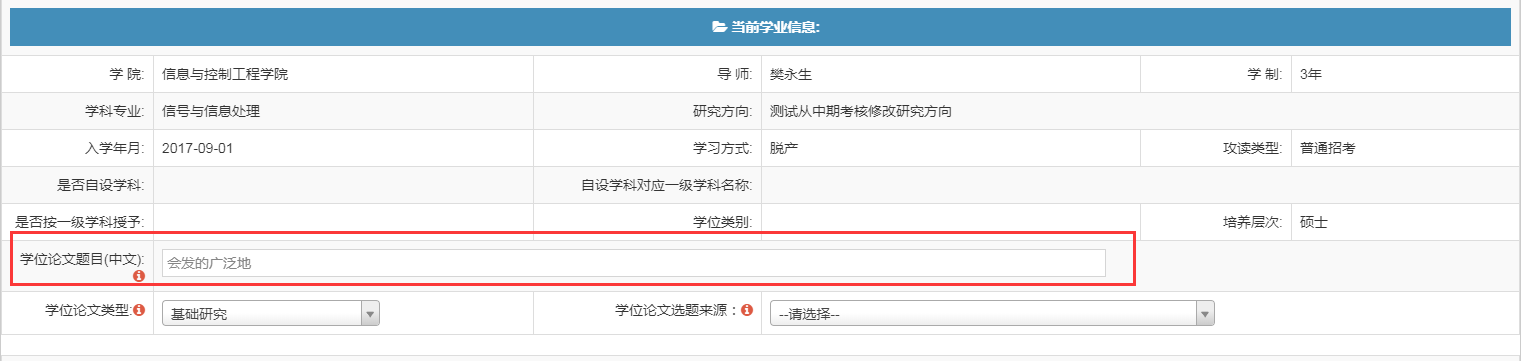 3.填写最终论文题目,需与提交的纸质版最终论文保持一致。
