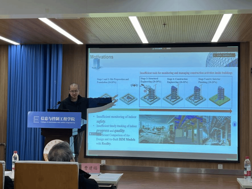 会后,引智基地正式启动“集智论坛”系列活动,首期论坛邀请香港大学潘佳副教授分享了题为“BIM增强的机器人移动及其在建造数字孪生中的应用”的学术报告,并与师生进行了深度交流。
