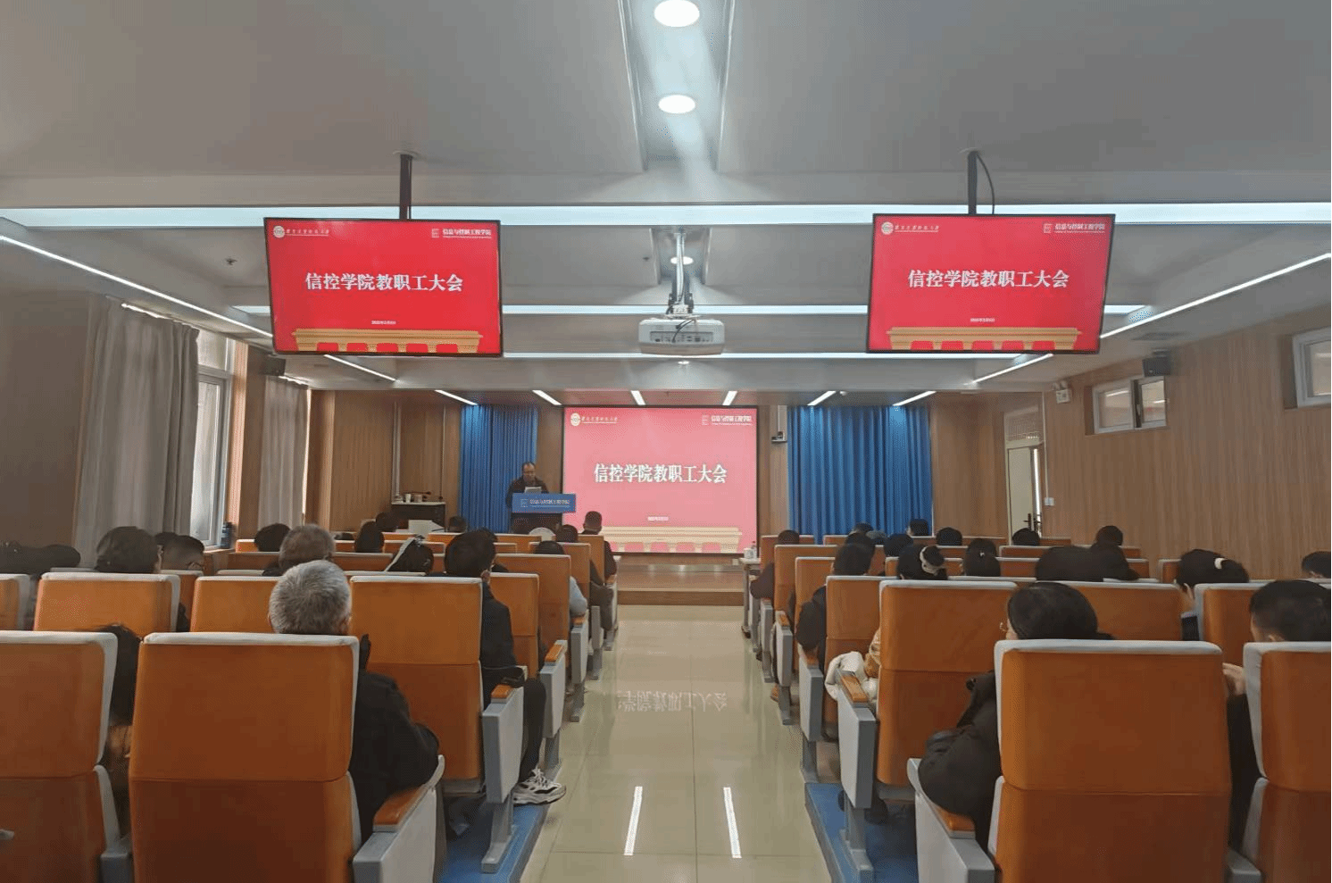 在信控楼606报告厅召开全体教职工大会,学习传达学校党委全委(扩大)会议精神,安排部署学院2025年工作。会议由学院党委书记于军琪主持。