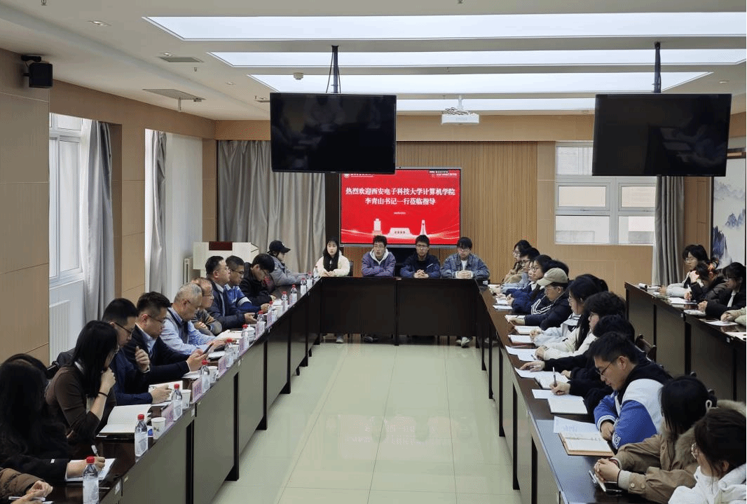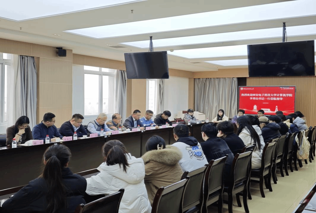 在草堂校区信控楼504会议室举办计算机专业学生代表座谈会。西安电子科技大学计算机学院党委书记李青山,通信学院党委副书记、纪委书记沈强,计算机学院副院长李瑞莅临指导交流,豆花视频