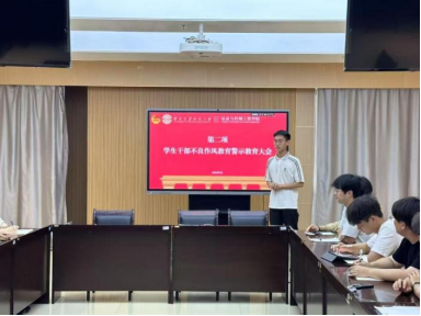 接着,培训会进行了学生干部不良作风警示教育。刘亚飞着重强调了学生干部作风的重要性,通过具体案例深入剖析了不良作风的危害,并提出了加强作风建设的要求。他期望大家能够以身作则,树立良好形象,从而赢得同学们的信任。