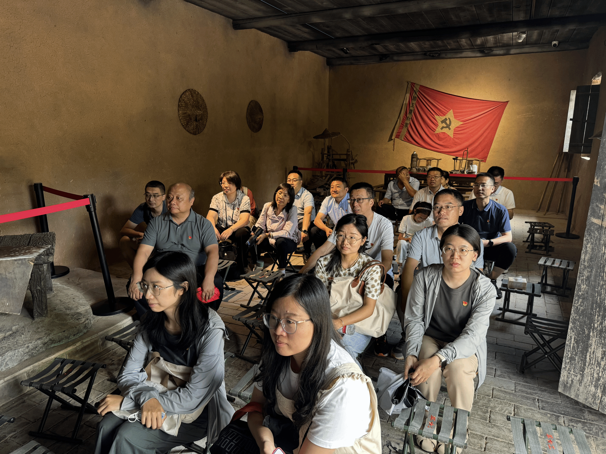 下午,教师党员们来到了陈家坡会议旧址继续参观学习。在陈家坡会议旧址,大家参观了会议旧址展厅中的珍贵文物遗迹,并观看了“陈家坡会议”纪录片,深入了解了陈家坡会议召开的历史背景。陈家坡会议在陕甘边区的革命进程中意义重大,犹如黑夜里的一盏明灯,指引着陕甘边区的党和红军突破黑暗,走向胜利。