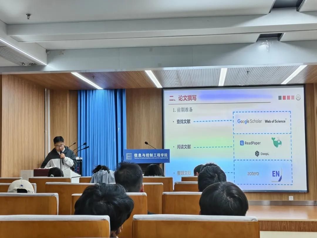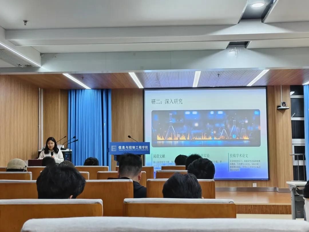 尹国通同学的分享聚焦硕士阶段核心发展需求,从“如何顺利毕业“、”如何规划自己的硕士生活”、“如何应对竞赛”、“如何争取奖学金” 四个关键维度展开,介绍了研究生期间阶段性的学习计划与目标,详细解读了奖学金评定的具体细则。并结合自身竞赛参与经验,分享竞赛与学术互相促进的方法,他鼓励同学们积极参加学术会议以及各项比赛,丰富自己的科研经历,为以后的发展打下坚实基础。