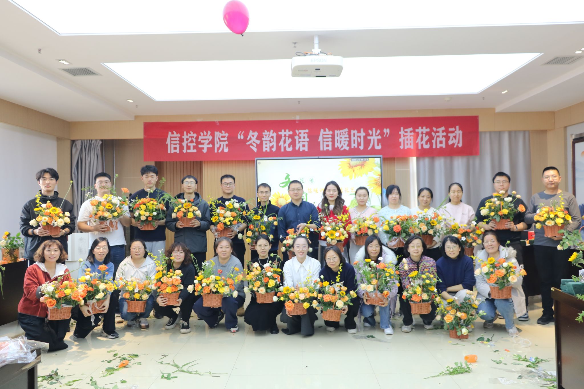 分工会于草堂校区信控楼504会议室举办“冬韵花语,信暖时光”主题插花活动,活动特邀校插花协会副会长崔璐老师进行指导教学。学院党委副书记、分工会主席米泽龙及全体教职工参加此次活动。