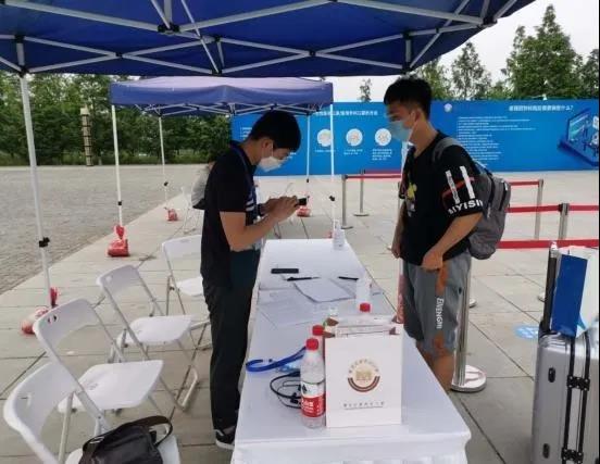 为切实保障师生生命安全和身体健康,学校统一引导报到学生保持间距,有序排队,在学校大门口工作人员对学生所带行李进行消毒,核验健康码,检测体温,正常后至学院报到处报到。
