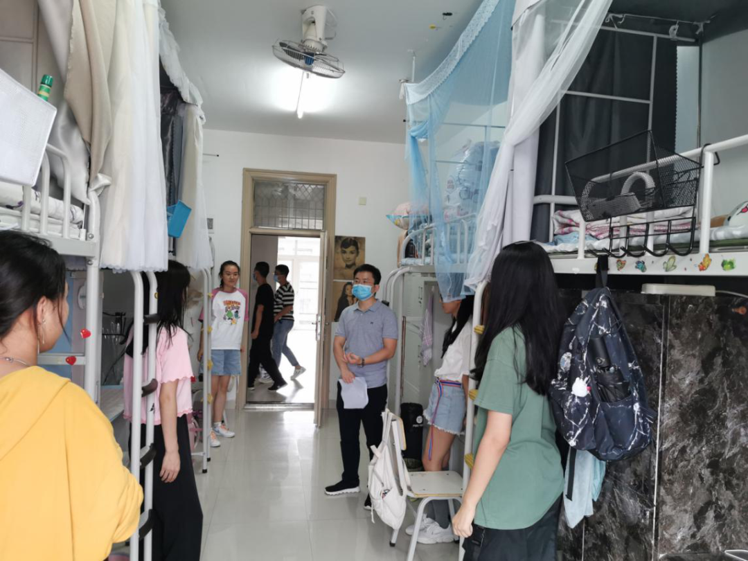 本科生各年级开展了学生宿舍安全卫生大检查,各年级辅导员深入学生宿舍,检查宿舍卫生安全状况,关心同学们的健康和生活状况。