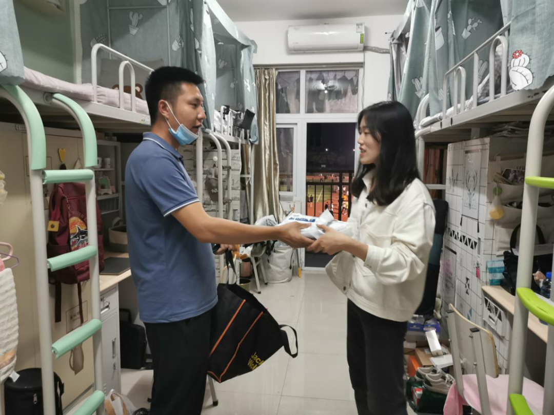 在走访检查过程中,各年级辅导员为学生分发了学校为返校学生精心准备的防疫物资,并和同学们亲切交流,及时了解返校后在学习和生活当中是否遇到困难,对返校学生送去了关心。在检查过程中,各年级辅导员主要从宿舍卫生、宿舍安全隐患、宿舍通风条件等方面对宿舍进行了排查,并对出现的问题进行现场指出,限期进行整改。
