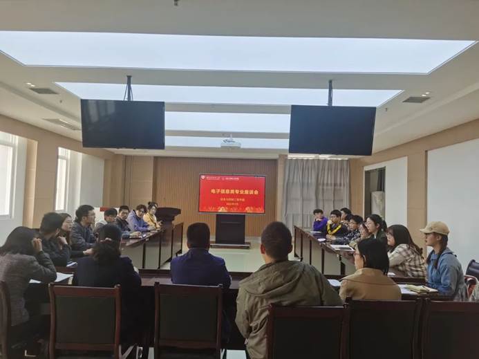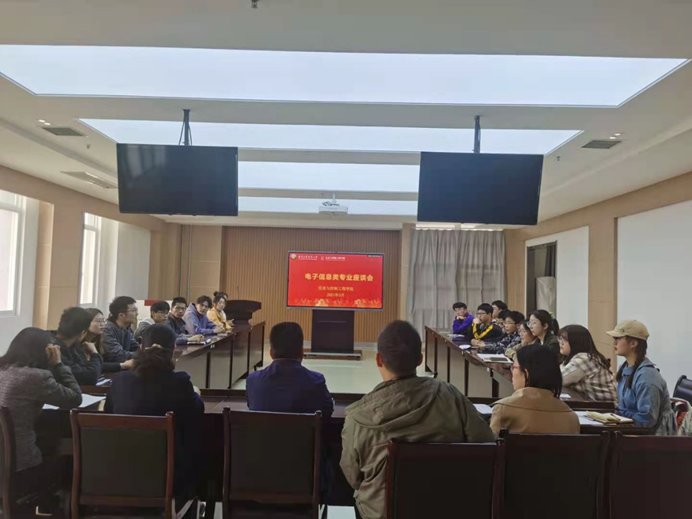 于3月29日下午在草堂校区信控大楼504召开电子信息类专业指导。院党委副书记、副院长张博、通电系党支部书记许捷、通电系主任王燕妮、通电系副主任王可、教学办主任刘梅、学工办主任顾欣、2020级辅导员赵莎和电子信息类专业学生代表参加此次会议。