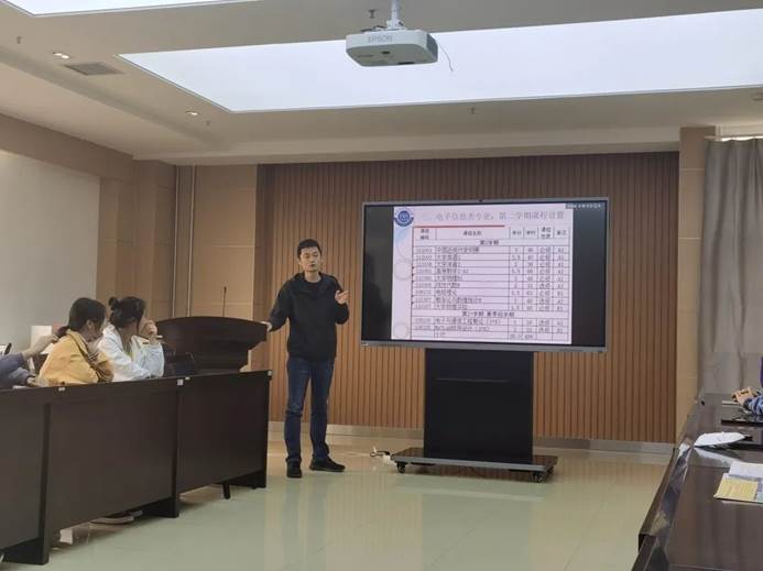通电系主任王燕妮结合学校学院政策,立足专业培养方案,为同学们解答课程设置原因,并从专业学习方法方式、学业规划等方面为学生们指明专业目标,做好课程学习规划。副主任王可从创新创业竞赛、研究生阶段科研任务为同学们讲解大一各门课程学习目的和学习目标。通电系党支部书记许捷对比兄弟院校同专业培养方案,让大家树立专业自信,引导学生坚定理想信念,希望同学们吃苦耐劳,砥砺前行。教学办刘梅老师通过和同学们进一步沟通交流,根据多年教学工作经验为同学们答疑解惑,强调同学们在校期间尤其是大一要努力学习,在探索中学习。