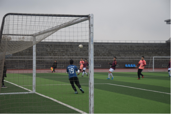 第28分钟,冶金学院右路获得角球机会,冯植将球传向后点,门将张子炜果断出击,在空中将球击出危险区。
