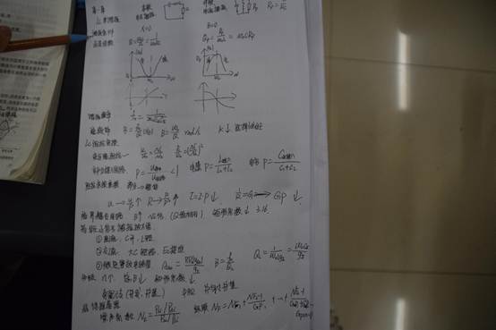 在对考试的重要知识点归类划分后,六位同学分章节将重要知识进行讲解。首先,葛思佳同学就“LG选频网络”,“高频小信号调谐放大器”,“集中选频放大器”,“电噪声”四个方面对“高频小信号谐振放大器”知识点进行分析。她针对本章内容分享了自己的学习方法,并结合课本例题进行讲解,帮助同学们更深入地理解记忆。
