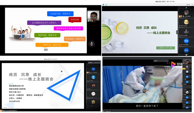 本科生各年级在辅导员以及班主任的组织下,召开了以“经历、沉思、成长”为主题的线上主题班会活动。