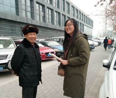 寒假期间,我们团队走进社区,走上街道,针对不同年龄阶段的老年人进行采访。在与老人的闲谈中获取我们需要的信息并积极向老人宣传智能手机的好处,希望通过我们浅薄的语言能提高老年人使用智能手机的积极性。在不方便出行的雨天,我们团队通过网络调查问卷方式来收集来自老年人子女提供的数据。
