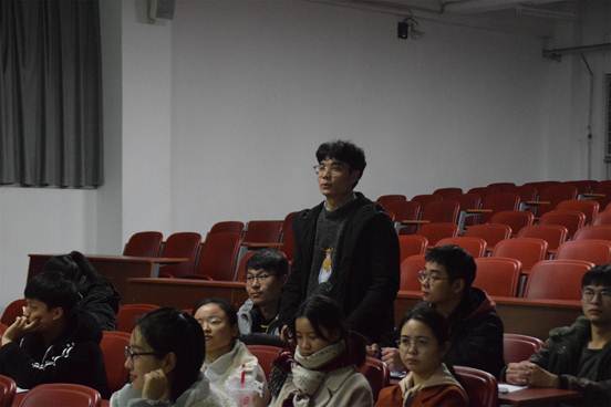 首先,周世华对同学们的四六级考试情况做了大致了解。在掌握了大致情况后他便开始了本次课堂的正式内容,他先提醒大家在开始答题前要牢记试卷的分数分布、时间分配和做题顺序,告诉同学们如何在考试的有限时间内尽可能地取得更多得分。随后他又分享了一些高分作文的技巧及作文常见类型,并通过投影仪为同学们展示了数篇优秀的例文作为参考。接着他给大家提出一个作文题目进行分享,并以随堂问答的方式就“如何构思此篇文章”进行提问。课堂现场气氛活跃,同学们听讲认真,对知识重点及时记录。紧接着他又为同学们讲述了四六级考试听力技巧,他建议大家在课后多拿出完整的时间进行听力练习,不要中途中断。最后,周世华为在场同学进行了统一答疑,耐心细致地解答了同学们在面对考试时常遇到的问题。