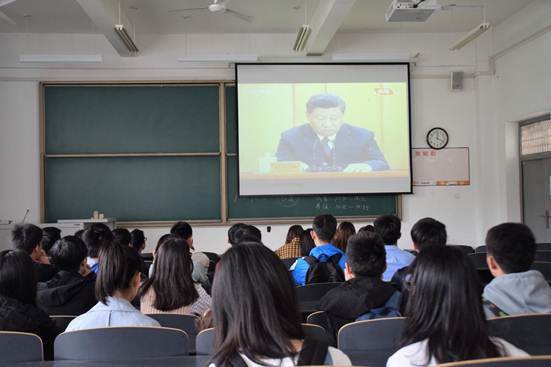 组织全体师生观看纪念五四运动100周年大会直播。上午10:30,大会准时举行,豆花视频