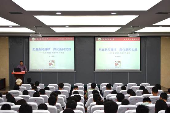 紧接着,李友海向大家讲述了新闻实践的钥匙:细节,新闻内容讲究准确,所以要用典型、生动的事实说话,且事实的基础是细节;若在新闻现场,要实现“一颗心,两只眼”,把握时机。并且他结合自身经历为我们声情并茂地讲了他的经验和见解。