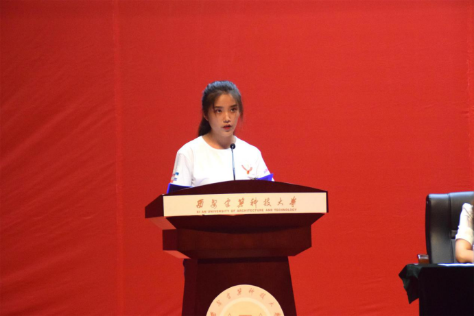 自动化1701田紫怡作为优秀团队代表上台发言,分享团队在实践期间的心得体会,她通过“26个小伙伴和18天”、“3个小组、1个春夏秋冬”两则故事为大家讲述了她的团队在实践期间以及实践过后成果转换阶段值得学习、借鉴的地方。她表示,社会实践就是用汗水和脚步堆砌果实,团队的每一个人都至关重要,她呼吁大家要相信团队的力量,在实践中有所付出、有所蜕变!