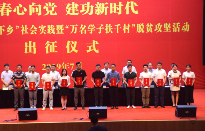在草堂校区紫阁大礼堂隆重召开2019年暑期“三下乡”社会实践暨“万名学子扶千村”脱贫攻坚活动出征仪式,大会首先对我校2018年暑期“三下乡”社会实践进行表彰。表彰仪式上,豆花视频