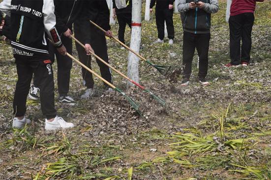 大家拿着扫帚、簸箕等清扫工具分成几组,分别来到学校东门内外的两处绿化草坪清扫落叶和垃圾。活动过程中,大家合理分工,认真清扫着草坪上的每一个角落。落在草丛中的零星落叶,同学们有的用扫帚扫出来,然后再集中扫到一起,装入塑料袋内,进行集中处理,还有的直接用手捡拾,最后将落叶聚拢成堆,倒入垃圾桶。大家互相配合,互相帮助,工作效率高,完成结果卓有成效。经过大家一中午的辛勤劳动,学校东门外的绿化带变得焕然一新,犹如两张绿色的毛毯映衬着雄伟的东大门。
