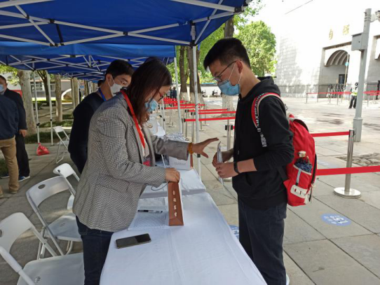 迎来了第一名返校生石德旺同学,信息登记、返校确认、注意事项叮嘱,辅导员老师耐心细致地按照流程进行报到工作,为学生回来的安全做好充分的保障。尤其是学校、学院为返校学生贴心准备的健康包,也为学生的返校增加一份安心和暖心。石德旺同学表示,回忆起一路奔波的返校行程,其实很疲惫,但当真正在进行报到流程,看到学校以及学院所作出充分的准备便会觉得很安心。