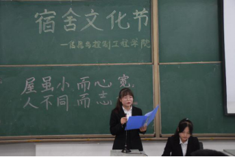 决赛在校歌的奏唱中开始,首先由学生会生活部部长张子炜发言,他对本次活动进行简要介绍,并说明决赛评比规则。随后,决赛答辩正式开始,六组优秀宿舍答辩代表依次上场,从成员介绍、宿舍特色文化、未来展望等几个方面进行陈述,表达出各个宿舍对多元宿舍文化的理解——“简约”、“朴实”、“追求高远”等,展示出同学们丰富的宿舍生活和不同风格的宿舍文化魅力。