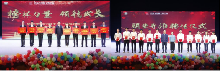 2021年“庆党百年·树时代新风,放飞梦想·展信控之彩”迎新晚会暨“领航计划”颁奖典礼、“朋辈导师”聘任仪式在紫阁大礼堂隆重举行。学院领导班子成员,系、科室负责人、辅导员和新生班主任与2021级新同学欢聚一堂。