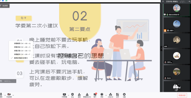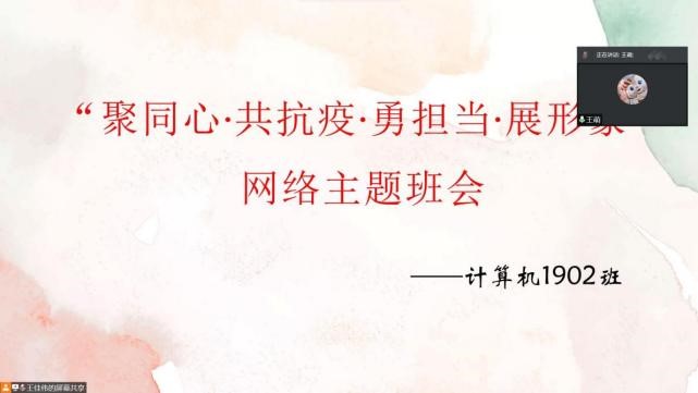 会前各年级辅导员与班主任积极沟通年级整体情况、班级思想动态、学生学习状况,各班班委积极配合老师做好会议预约、PPT准备等工作。班主任们通过线上主题班会向学生传达疫情防控工作的各项要求,从疫情认知到自我防护,从宣传抗击疫情倡议到学校相关豆花视频公告