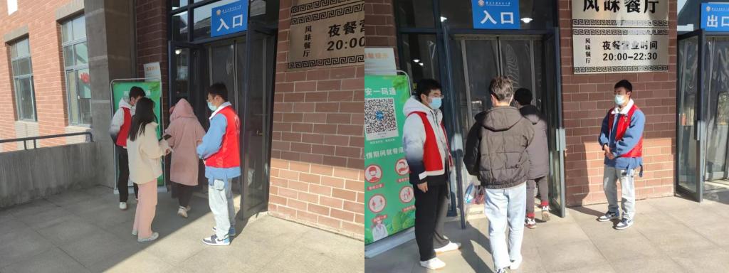 的志愿者们在餐厅人流量变大之前迅速到岗,督促同学们带好口罩,保持距离,有序进出食堂,确保食堂队伍井然有序。他们用行动守护建大学子平安健康。