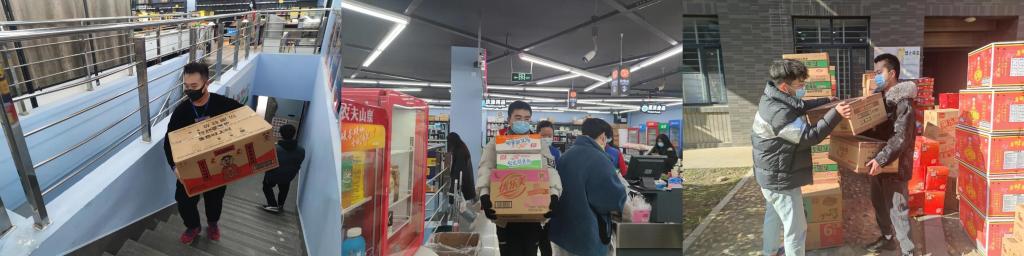 而在另一边,面对超市工作人员紧缺的现状,志愿者们主动承担起责任,同心协力,帮助超市搬运生活物资。超市里穿梭着他们的身影,他们用实际行动展现了信控学子的青春担当。
