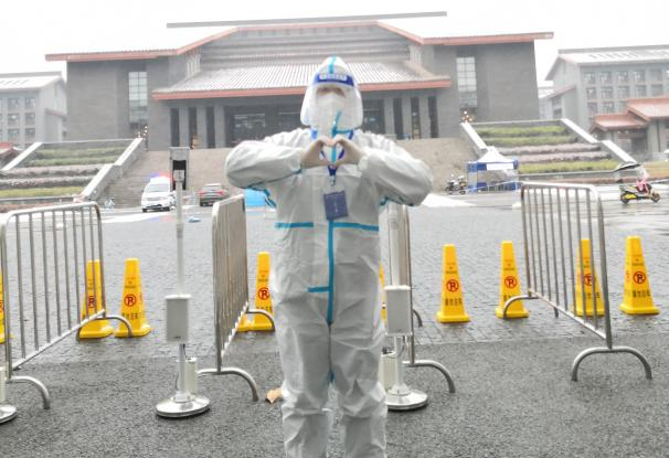 早晨5:50准时起床,匆匆忙忙洗漱穿衣,带上工作牌,等待进行人脸识别。因为疫情防控严峻,这是我们第一次穿防护服检测,具有特殊的意义。看到考生们摘口罩的动作时,我们多少有些恐慌,但看到他们脸上严肃而又认真的表情,我们心中便萌生出坚定的信念。作为保障考生们后勤和健康安全的志愿者,我们更应该做到无所畏惧!在这时,我们才能感受到一线医护工作者肩上的责任与使命。穿着防护服长达6个小时,我们的身体都会有莫名的疲惫感,而听到考生们时不时说一声“谢谢你们” “辛苦了”,内心便非常欣慰。