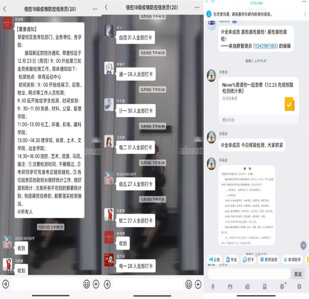 第四党支部积极行动,充分发挥党员支部战斗堡垒作用和先锋模范作用,凝聚党员力量,奋力与时间和疫情赛跑,切实维护广大同学身体健康和生命安全。