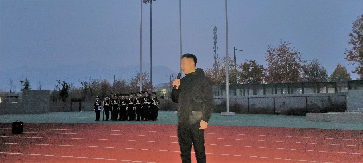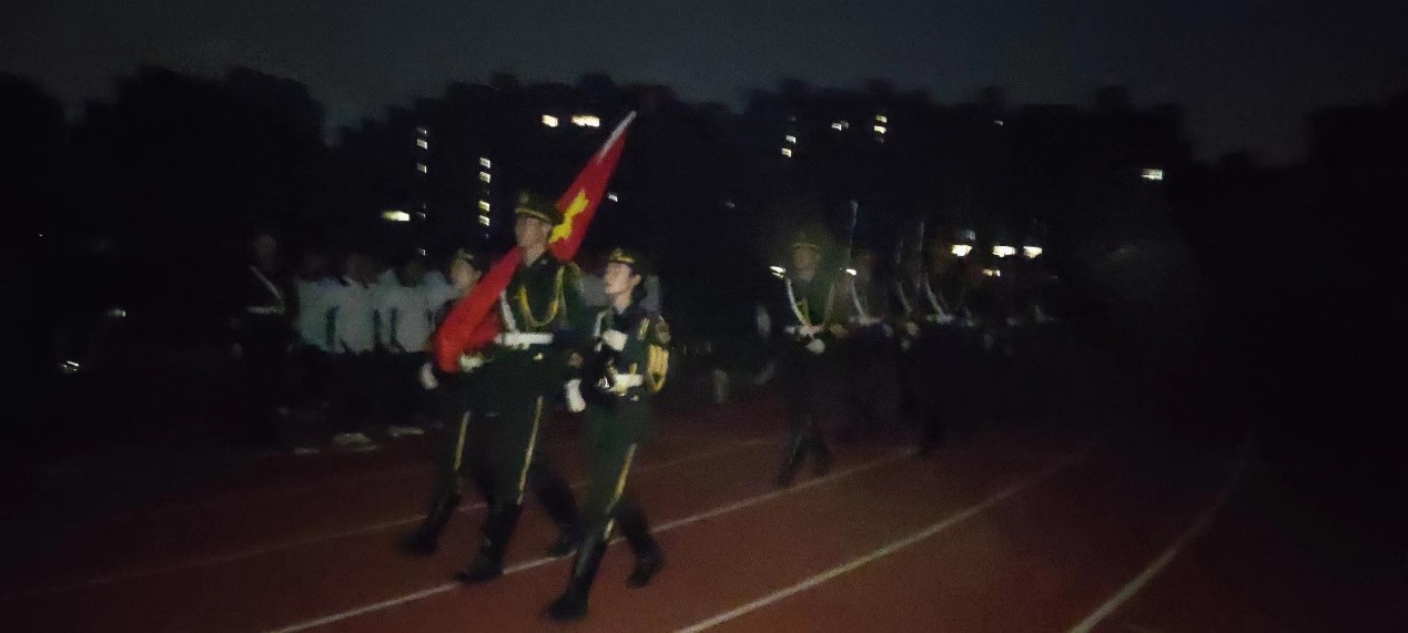 早上6:45,升旗仪式正式开始。身姿挺拔的国旗护卫队护送着鲜红的五星红旗,迈着坚定有力的步伐,展现着铁血与刚毅。伴随着激昂、振奋的国歌,五星红旗缓缓升起,现场全体人员庄严肃穆,行注目礼,眼中饱含敬畏。红旗飘扬,祖国的历史随之舒展在前,对祖国的自豪感在心中默默吟唱。