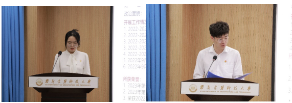 学院团委、学生会、研究生会、记者团、“星火”志愿者服务队、科创协会主要负责人结合工作实际,依次进行了工作述职,各述职者围绕思想引领、学风建设、学术科研、社会实践、志愿服务、文化体育等方面,介绍了在过去一年中开展的丰富且成效显著的工作。