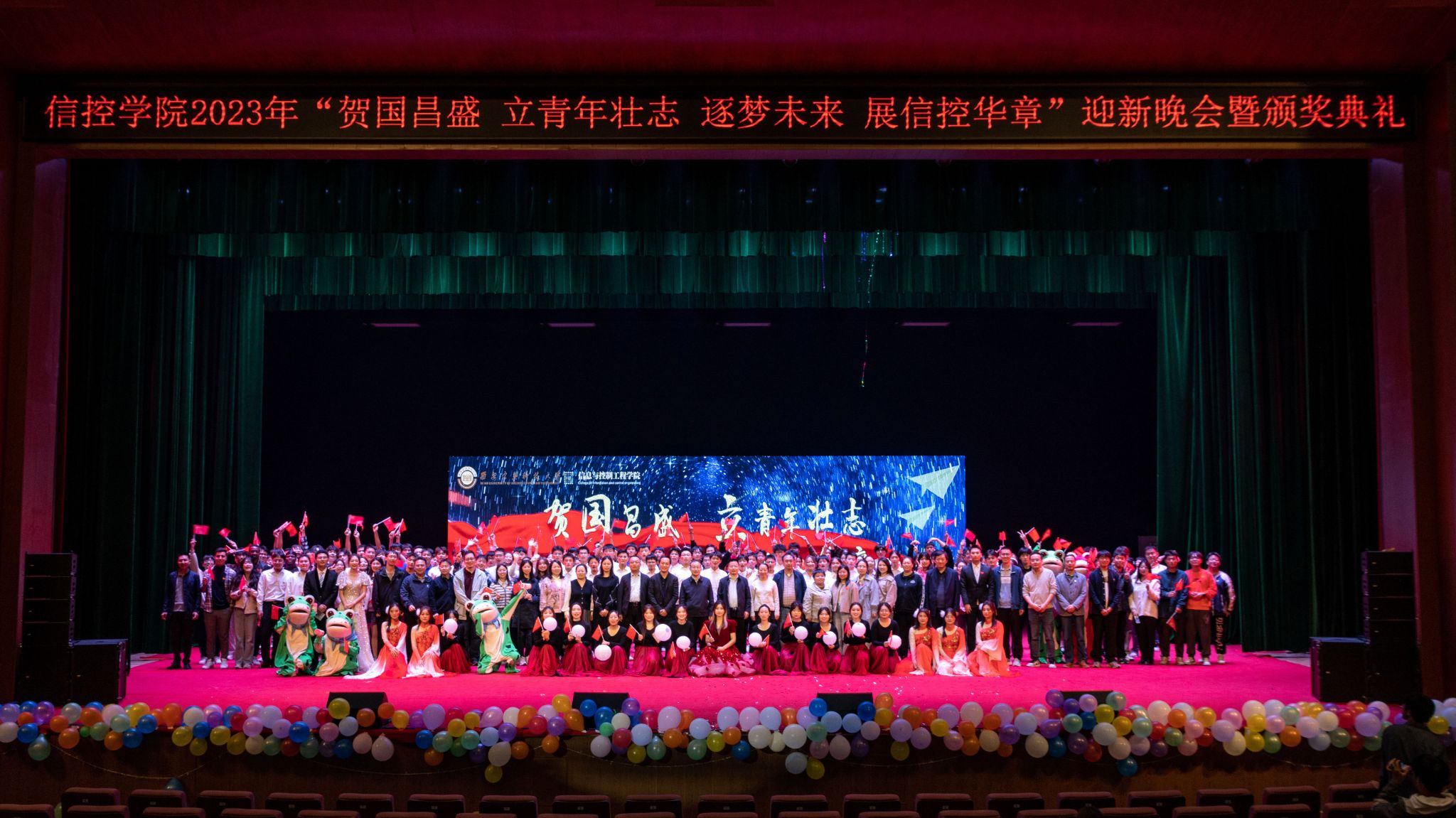 在紫阁大礼堂举办2023年“贺国昌盛,立青年壮志;逐梦未来,展信控华章”迎新晚会暨颁奖典礼。学院班子成员,系、科室负责人,各专业教师代表,新生班主任,辅导员以及2023级新同学共赴精彩盛宴。