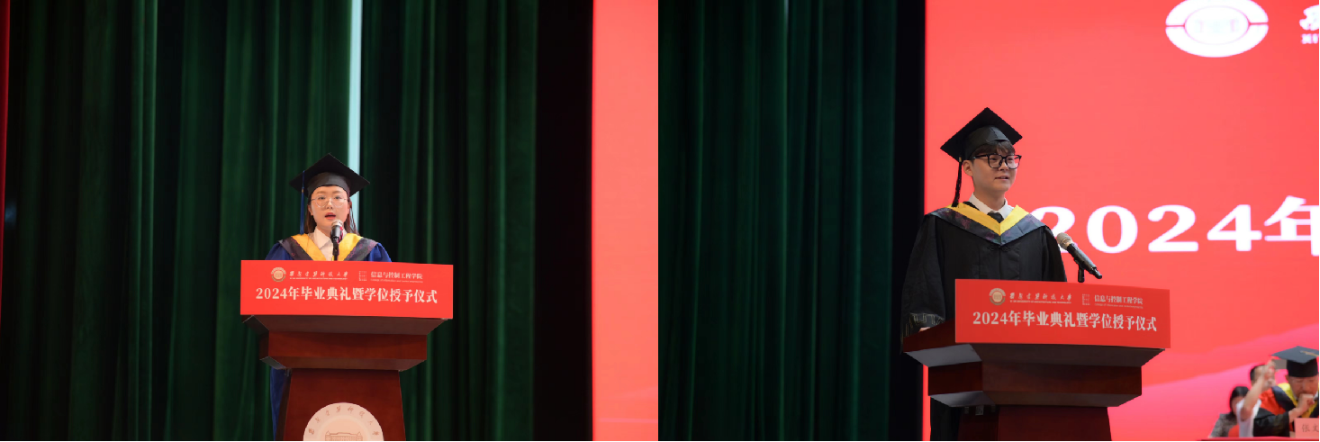 优秀毕业生代表麻瑞、周桂生回顾了大学的美好时光,并表示未来将用信控人的自信去迎接挑战,用建大人的务实去实现理想,用新时代青年学子的担当去实现家国情怀,将奋斗的汗水洒在祖国的大地!
