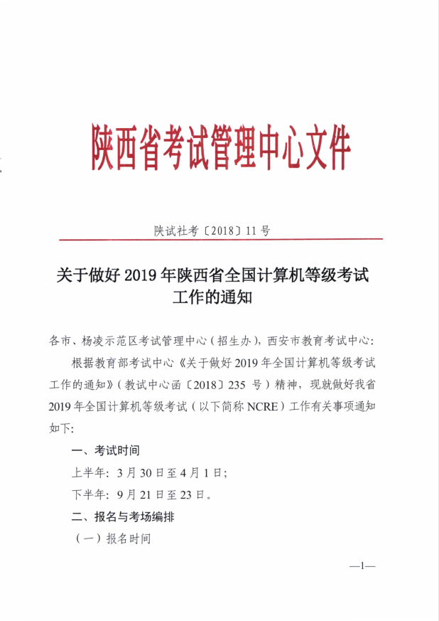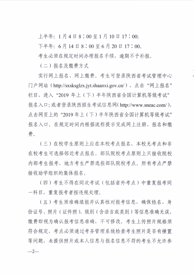 关于做好2019年陕西省全国计算机等级考试工作的通知