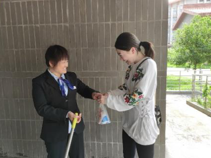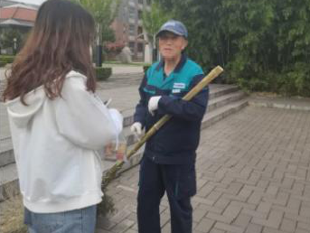 “五一”代表“劳动”,寓意“奋斗”。劳动创造了中华民族的辉煌历史,奋斗推动着我们迈向新时代。活动第一站,支部成员在校内为坚守工作岗位的劳动者献上爱心,支部成员为校内宿管阿姨、警卫员、学府城保洁阿姨、快递员、清洁工送去爱心早点,向他们致敬,虽然是在“五一”假期,但他们依然坚守在工作岗位,用双手创造美好生活,用双肩扛起平凡担当,为我们创造了一个良好、舒适、便捷的校园生活环境。