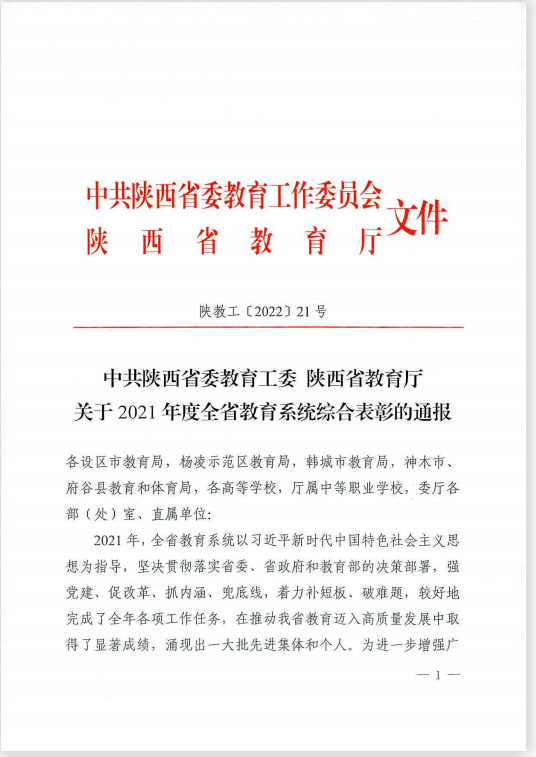 近日,中共陕西省委教育工委陕西省教育厅公布了2021年度全省教育系统综合表彰结果,豆花视频