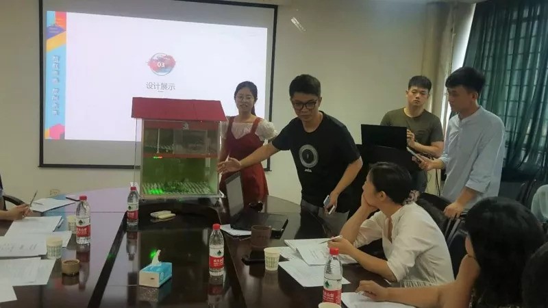 评审答辩包括PPT展示、视频或实物演示和评委提问三个环节。在展示和演示环节,参赛选手首先通过PPT对参赛作品的整体方案、设计思路、理论研究和专业知识运用等进行讲述,并通过实物演示验证方案设计与理论研究的可行性;专家评委根据答辩内容分别提出作品的现在所存在的问题,并给出修改和完善的意见,为各组参赛队伍的作品研究和改进给出指导意见;最后,专家评委根据参赛作品的技术创新性(创意性、先进性)、作品完整性(外观、功能)、答辩表述能力等方面进行综合评审,最终给出评审结论。