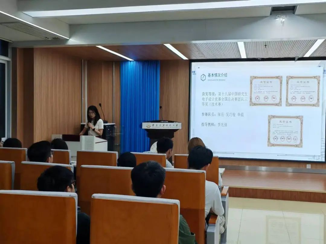 研究生会彭琪同学向大家详细介绍了研电赛的基本情况,包括赛事的起源、历史、目的、参赛要求、比赛流程、评审标准、奖项设置以及对参赛者的意义和影响。