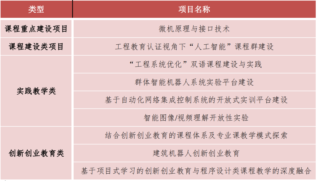 先期开展了多项课程建设重点项目、课程建设类、实践教学类、创新创业类教学改革项目,为人工智能新专业的理论教学、实践教学、创新创业教育奠定坚实基础,使学生在“学中做”、“做中学”。